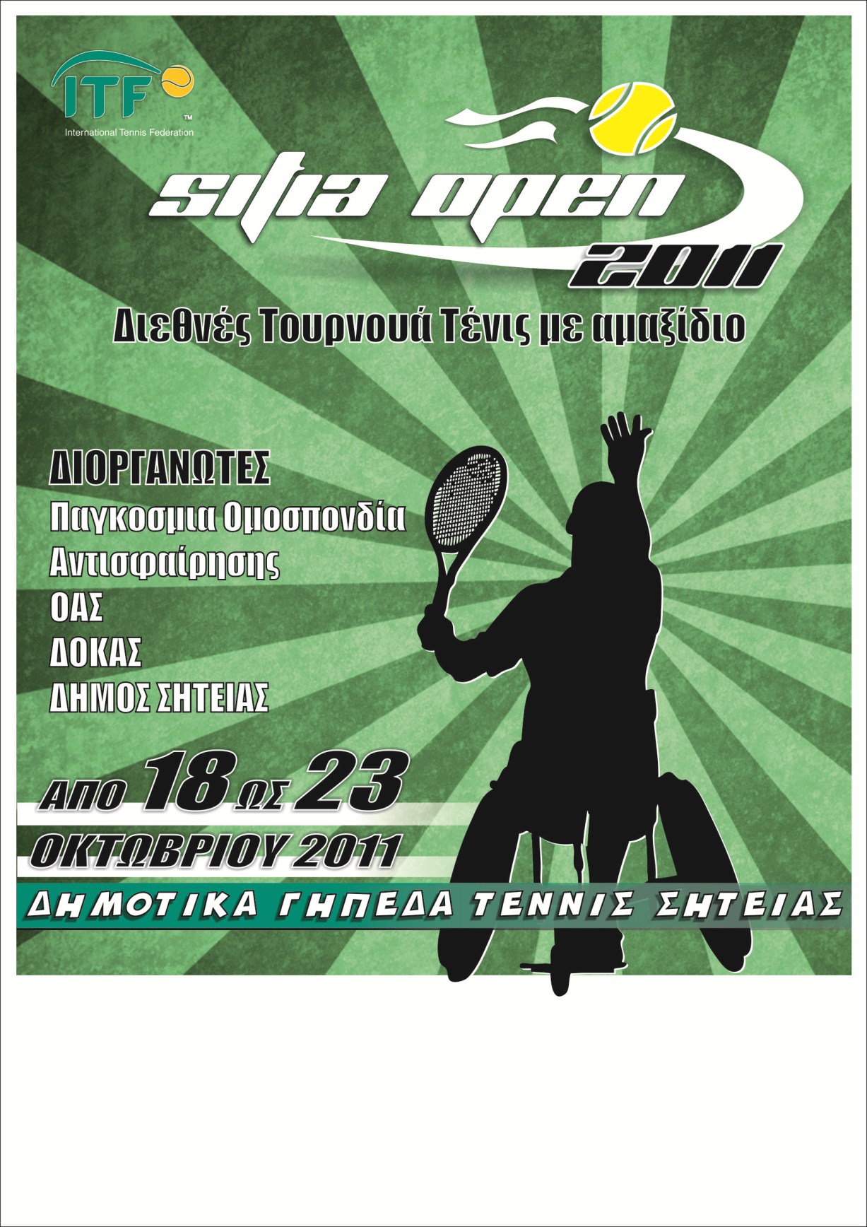 Ο Δήμος Σητείας σε συνεργασία με τον Δ.Ο.Κ.Α.Σ, τον Ο.Α.Σ. και τον Όμιλο Αντισφαίρισης Σητείας διοργανώνουν για 6η συνεχόμενη χρόνια το Διεθνές Τουρνουά Τέννις με Αμαξίδια -Wheelchair Tennis Tour-, με την επωνυμία «SITIA OPEN 2011» από 18 έως 23 Οκτωβρίου. Στο τουρνουά, που θα διεξαχθεί στα τέσσερα δημοτικά γήπεδα τέννις στην περιοχή Αγίου Κωνσταντίνου Σητείας θα συμμετέχουν αθλητές από όλο τον κόσμο, όλοι τους άτομα με αναπηρία (ΑμεΑ).
