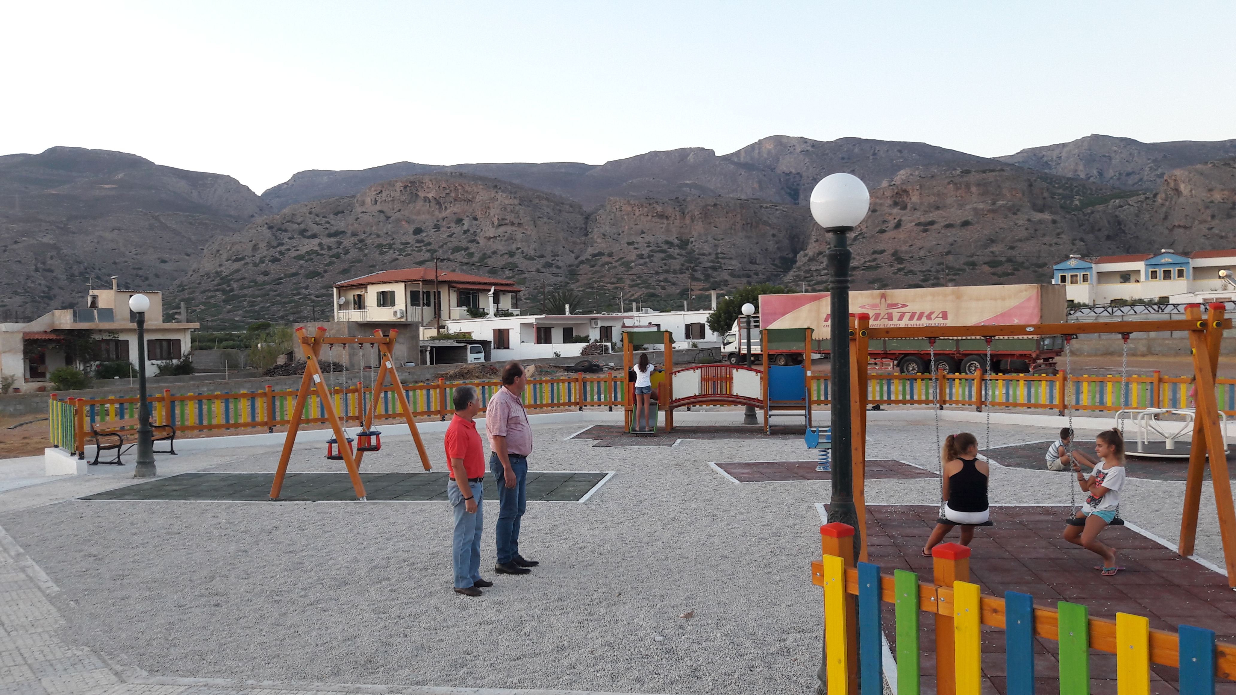 Ο Δήμαρχος Σητείας κ. Θοδωρής Πατεράκης συνοδευόμενος από τον Πρόεδρο του Δημοτικού Συμβουλίου κ. Γιάννη Δρακάκη επισκέφτηκαν την πλατεία του Γούδουρα, σε τμήμα της οποίας κατασκευάστηκε μία σύγχρονη παιδική χαρά για τους λιλιπούτειους φίλους μας, σύμφωνα με τα ισχύοντα ευρωπαϊκά πρότυπα ασφαλείας παιδικών χαρών.