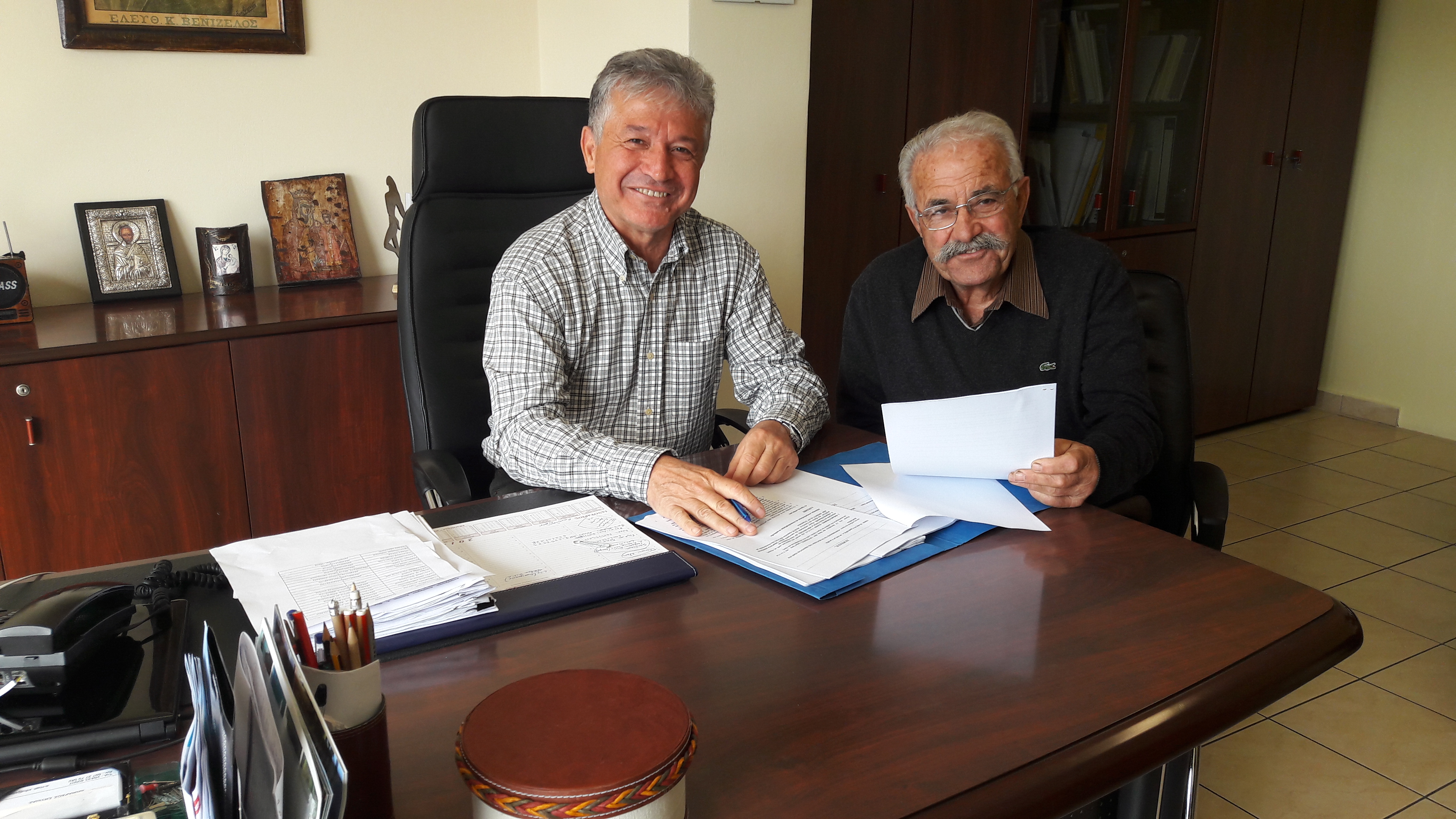 Ο Δήμαρχος Σητείας κ. Θοδωρής Πατεράκης, παρουσία του Προέδρου της τ.κ. Μαρωνιάς κ. Ζερβού Πολυχρόνη, υπέγραψε σύμβαση με τον ανάδοχο <<Ανδρούλα Σορούλα και ΣΙΑ Ε.Ε>>που αφορά το έργο: